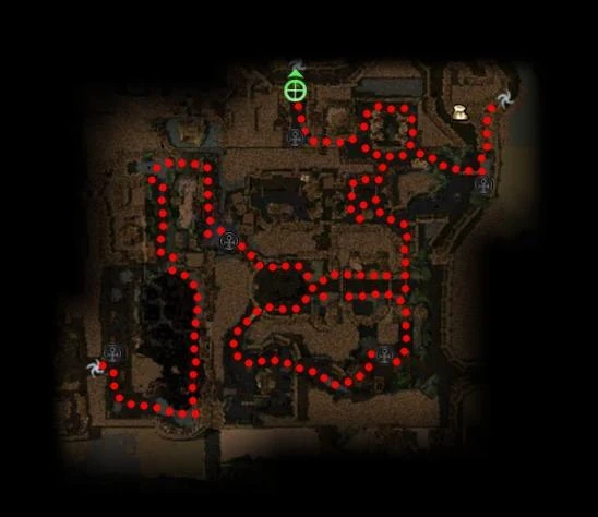 On peut dessiner sur la boussole (bouton gauche de la souris) ce qui peut être très pratique pour rapidement donner des ordres à son groupe sur la direction, le ciblage ou les positions à tenir... La direction à suivre pour une quête sélectionnée dans le journal est indiquée par une flèche verte sur le bord de la boussole ou une étoile si vous vous trouvez assez près.