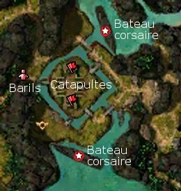 Le but de la mission est simple : il faut tuer tous les corsaires présents sur la carte. Les corsaires à terre peuvent être tués directement; pour ceux situés sur les bateaux, on peut utiliser les catapultes : il suffit d'aller chercher un baril, de cliquer sur le levier de la catapulte pour la charger et de cliquer une deuxième fois pour tirer avec. Cela a pour effet de détruire les bateaux avec leur équipage.