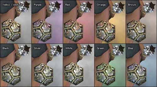 Dye affects only the dodecahedral part of the focus, faintly tinting sections of it. Its default color is yellow.