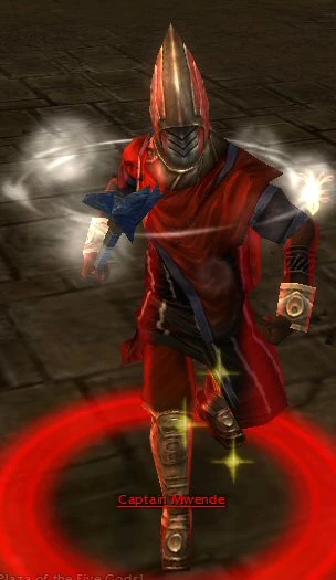 Captain Mwende is a boss found in the Consulate Docks mission. He is accompanied by a small group of Elite Kournan soldiers.