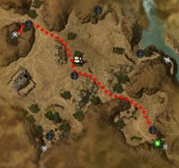 Quest map through the Jahai Bluffs from the Command post