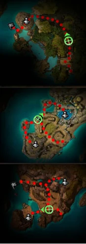 This mission consists of three maps per round. Once all three maps are completed a new round will start from the first map. On the first map the player must kill a single Guild Lord, followed by two Guild Lords on the other two. Each Guild Lord is protected by two Patrol Groups on short fixed paths, and a few other insignificant guards. Once all the Guild Lords on a map are killed the portal is activated. Once a player (not a hero or henchmen) enters the portal the entire party will be teleported to the next map.