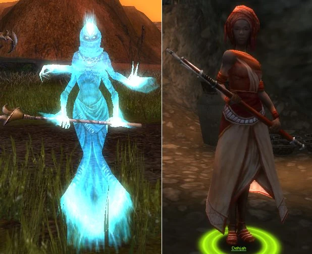 Dehjah is a Djinn leader and ally of the Master of Whispers. She aids players in weakening and then defeating the powerful demon The Drought.