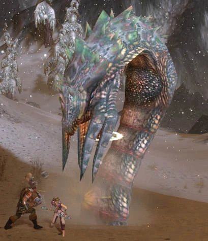Frost Wurms are the wurms of the Shiverpeak Mountains. The northern variety are much larger as well as much more dangerous, they will erupt from the ground and spray their targets with an extremely potent bile to wear them down before smashing into their targets with their large maws.