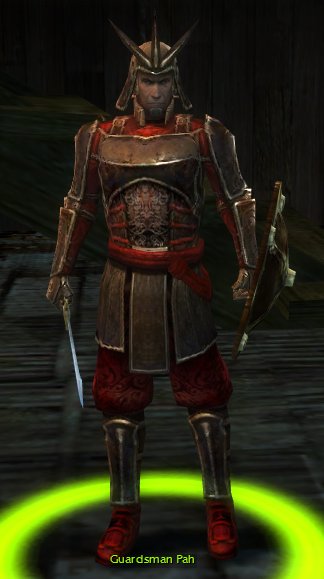Guardsman Pah is one of the dwindling number of Canthan Guards remaining to protect the city.