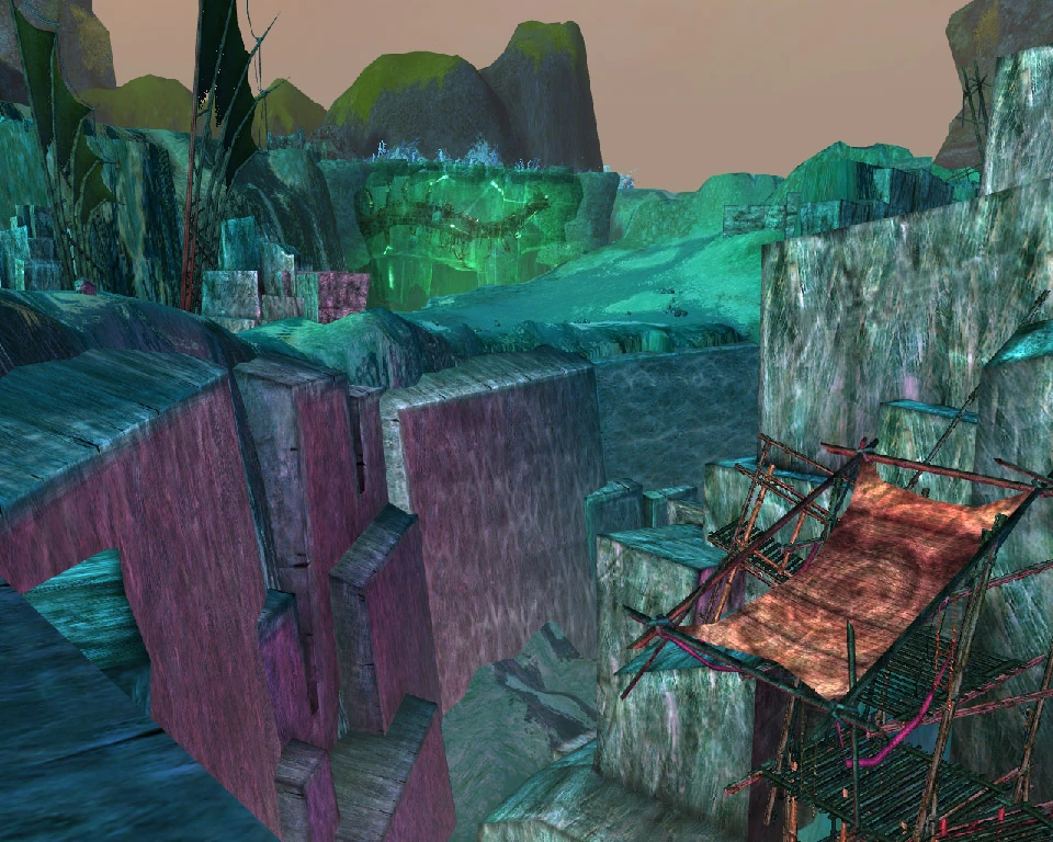 Gyala Hatchery is an explorable area in the Jade Sea. The western part is open jade, but there is a large island in the centre-east of this region and a few smaller islands and excavated regions south of it.