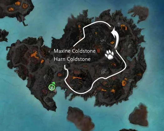 - This boss does not begin his patrol until you find him. He can be found down the road that leads east in the center of the island. He also shares his spawn point with Maxine Coldstone. If you see Maxine, Harn will not be on the map. Zone and try again.