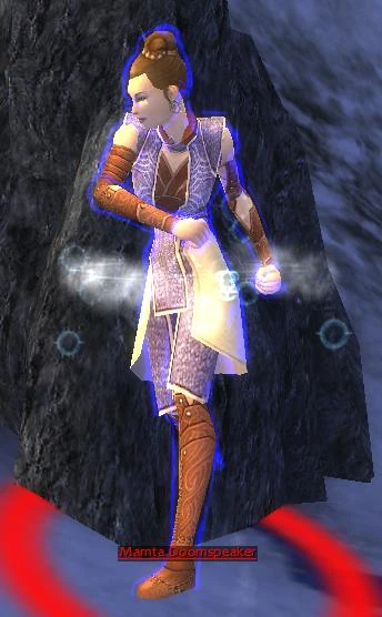 Marnta Doomspeaker is a human boss found in Snake Dance that can be found with Cry Darkday near Merin Trollsbane north of Camp Rankor. She appears to be Canthan (or a former Xunlai Agent). This boss is the only boss known not to carry a weapon as the past version of her elite would end upon attacking.