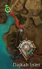 - Map travel to Dajkah Inlet if possible, since it will be the shortest way. Be sure to bring Melonni. Head out to the Sunward Marches. Melonni's contact, Jehrono, will be on the shore, near the docked boat.