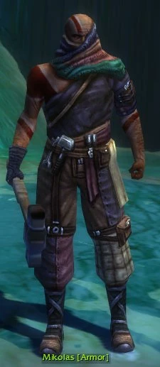 Mikolas crafts Luxon 15k armor sets. He will not offer his services if your Luxon Faction is zero or is less than your Kurzick Faction, regardless whether Leviathan Pits is under Luxon or Kurzick control at the moment you talk to him.