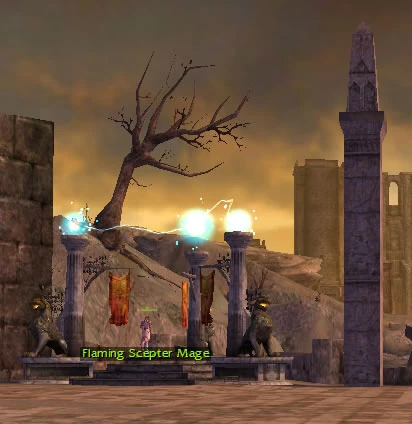 An Obelisk at the Nolani Academy, guarded by a Flaming Scepter Mage