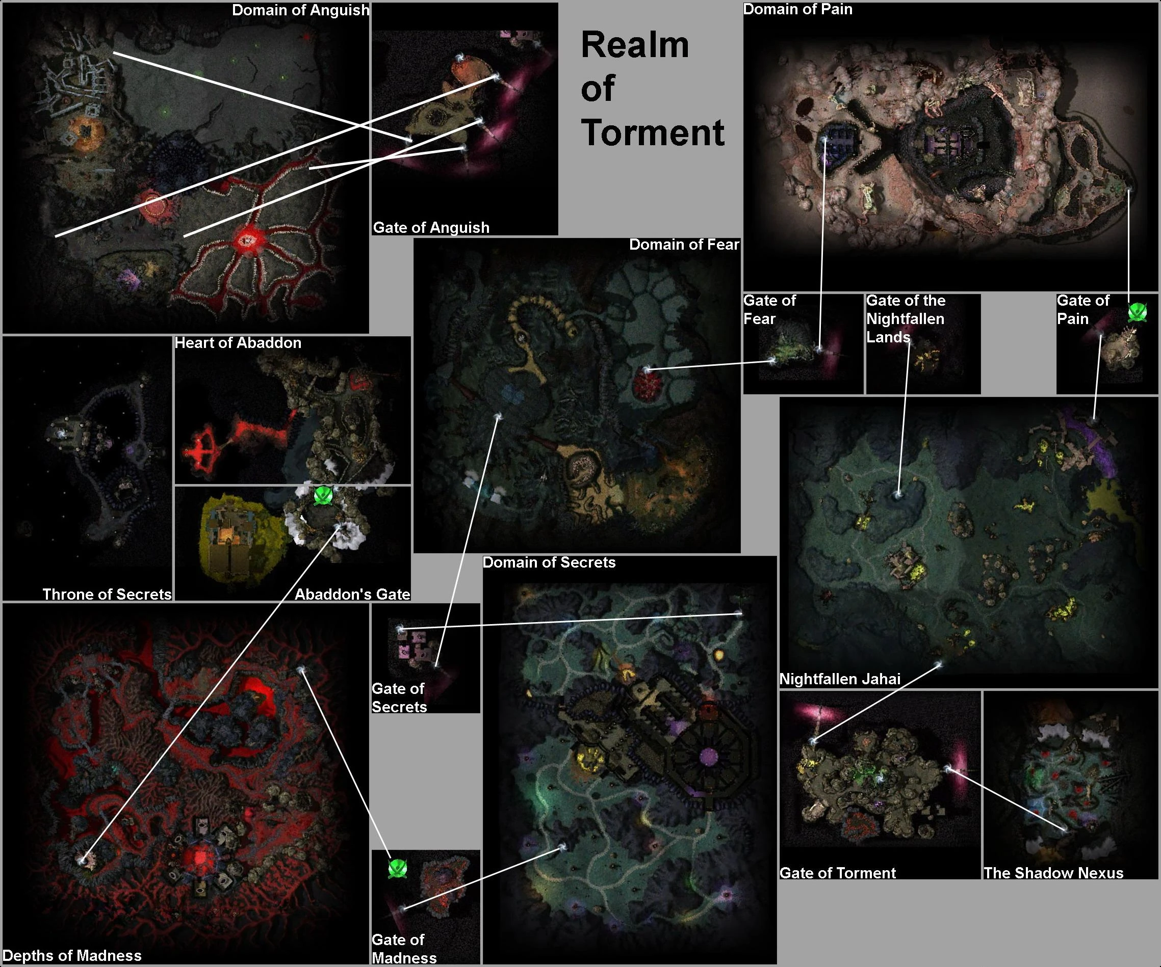 - All of the Realm of Torment's gates except for Abaddon's Gate share the same map.