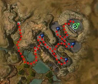 When the mission starts, Dehjah will lead you through a few groups of Steelfang Drakes and Kournan troops to the entrance of the waterworks. She will run ahead of your group and eventually stop at point close to the drakes but clear of the aggro. She will then wait for your arrival to that point and then continue.