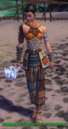 Seaguard Gita is a member of the Serpent clan, and fights as part of Aurora's party in the Convocation in the Luxon mission line.