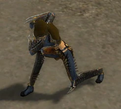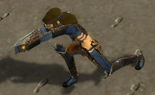 - All skills that cast in a short amount of time (like most Assassin skills and hexes) result in the Assassin spreading one leg out to the side, bending the other, then reaching upwards and throwing something to the ground- all in quick succession. Skills and spell with longer casting times result in a similar animation, but the Assassin will hold his hand in the air for as long as the spell takes to cast before throwing it downwards.