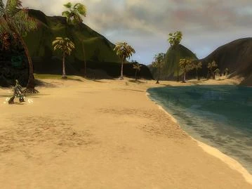 General Description: An amazing look is created by water, sand and grass in this monster-infested area. Players entering from the Sanctum Cay entrance will be able to see a huge, floating fort on their right.