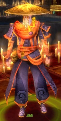 Suun, the Oracle of the Mists, is the custodian of Tahnnakai Temple and the leader of the Adepts serving at the temple. He resides in the humble slums of Nahpui Quarter. In the Nahpui Quarter mission, he gives directions to the players on how to become Weh no Su (or Closer to the Stars).