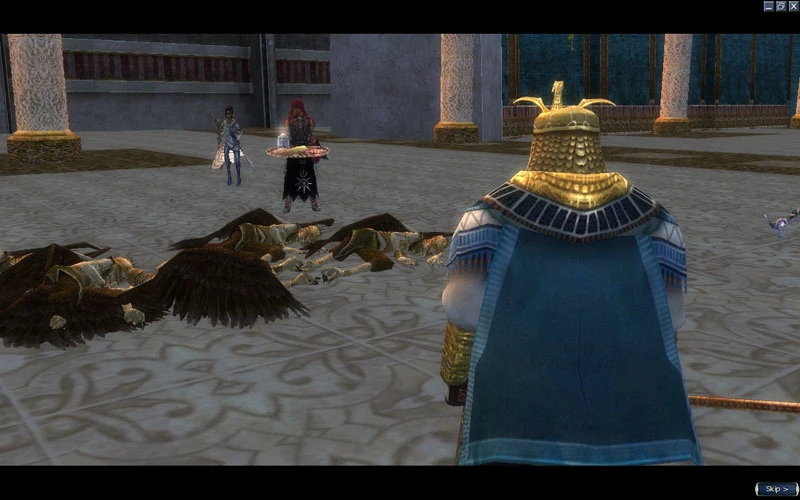 Another method is that of running past through the last batch of harpies, until the 4 guards in your group manage to arrive up to top of the stairs and engage the harpies themselves. Then turn round and assist in casting.