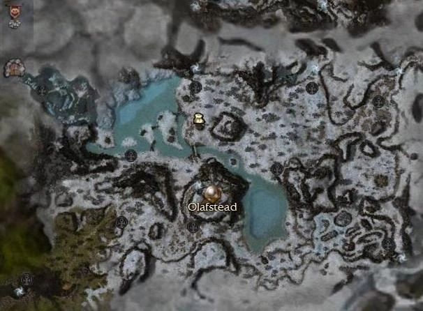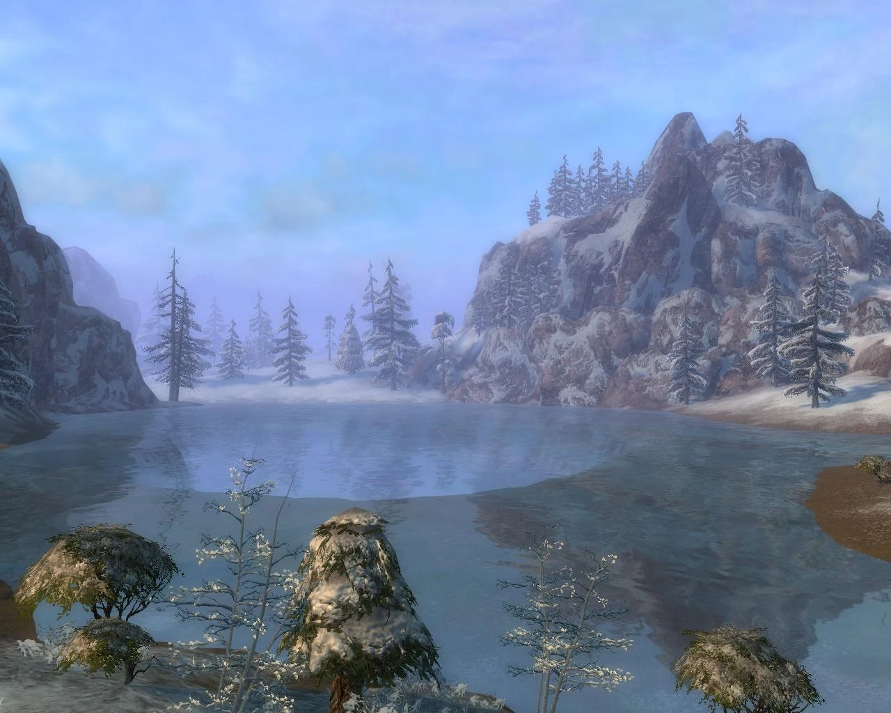 Varajar Fells is an Explorable Area in the Far Shiverpeaks. It sits at a lower elevation than most of the region, as evidenced by the unfrozen lakes and grassy area in the Southwest. To the east is a narrow path that travels south of Olafstead and the deeper of the two lakes in this area, eventually leading to the closed valleys on the east side of this area. The north-central area is wide open and patrolled by Modniir. The northwest is comprised of a shallow lake with several islands and a cave on the shores. The eastern valleys appear to have some connection to worlds beyond Tyria