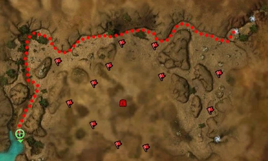 Twelve guard posts are marked on the map by red flags. When you move in range of one, a timer will start counting down. If you do not defeat all of the Kournan troops stationed at the post before the timer expires, Siege Attacks will be launched at the guard post.