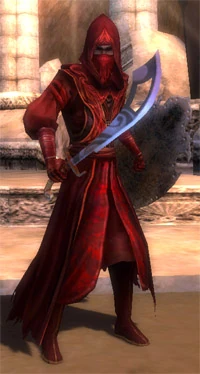 - Hard mode initial dialogue: "Psst...Sunspear. I'm a member of a quiet group that has been tracking your movements. You're impressive, but unfocused. I have something that will help. A new plague of Elementals, Djinni and living lands, have infested these lands. We need those elementals destroyed. If you are interested, I will give you this mark to show you fight on the side of light. But beware, they have grown quite powerful."