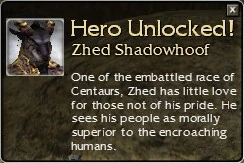 Zhed Shadowhoof is one of the Heroes available in Guild Wars Nightfall. A member of the centaur race with serious reservations about working with hated humans, Zhed must put ancient enmities aside to face a greater enemy. He is a centaur of the Veldrunner pride, the last free pride in Kourna.